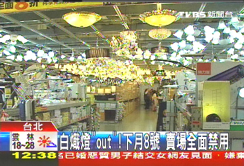 近來全球暖化議題發燒,為推動節能減碳,經濟部下個月8日將會公告,包括大賣場,百貨公司,超商還有醫院等公告場所全面禁用白熾燈泡,但會給業者半年緩衝期,好汰換相關設備,而且2012年開始,也會全面禁止進口或生產白熾燈泡。儘管一顆省電燈泡的錢,相當可以買到六顆白熾燈泡,但經濟部官員評估,要是國內白熾燈泡全部汰換,減少的二氧化碳排放量,相當於1342座的大安森林公園吸附量總和。